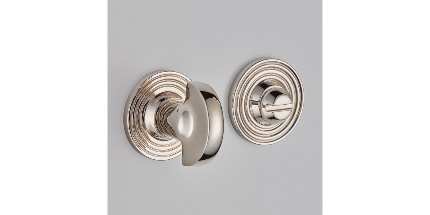 This elegant and stylish half-moon bathroom turn and release, mounted on a reeded covered rose, is the perfect way to provide privacy whilst also ensuring access from the outside in case of an emergency. The Croft Foundry has many years experience in delivering exceptionally high quality products, which combine stunning designs with functionality.