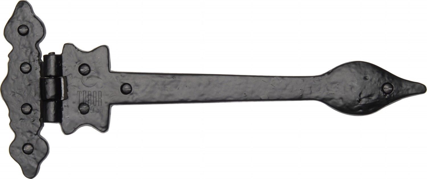 This Leaf hinge comes from one of the UK's leading architectural hardware companies, M Marcus, based in Birmingham. Part of the Tudor Black Iron Collection, this piece has a black powder coated finish over a traditional Tudor design, making it ideal for restoration projects.