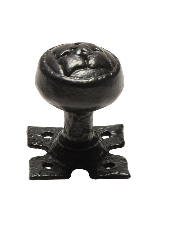 This embossed door knob set on decorative plate from Kirkpatrick will add traditional quality to any door.