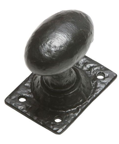 This simple oval door knob set on square plate from Kirkpatrick will add traditional quality to any door.