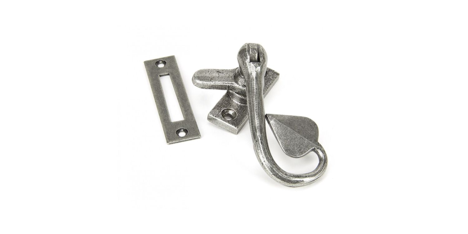 This Pewter Shropshire Casement window fastener by From The Anvil is heated, then hammered on an anvil into a stunning leaf like shape. This piece is intricate and delicate - a fantastic addition to any home wishing to make a subtle statement.