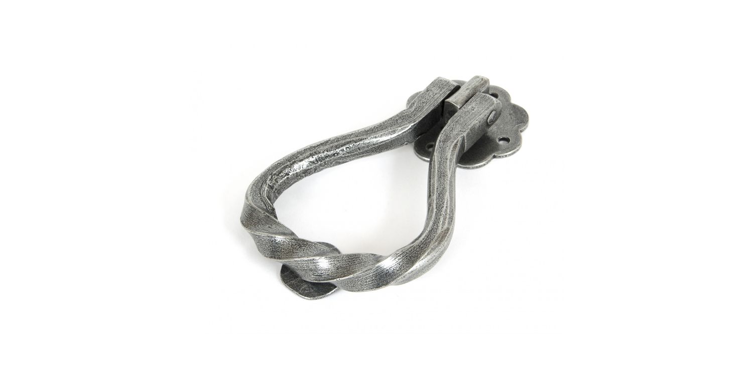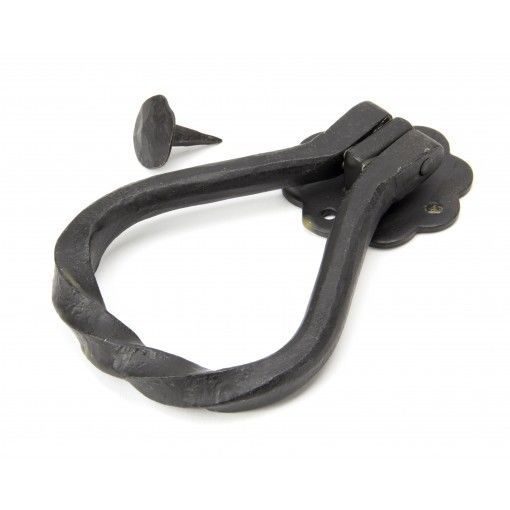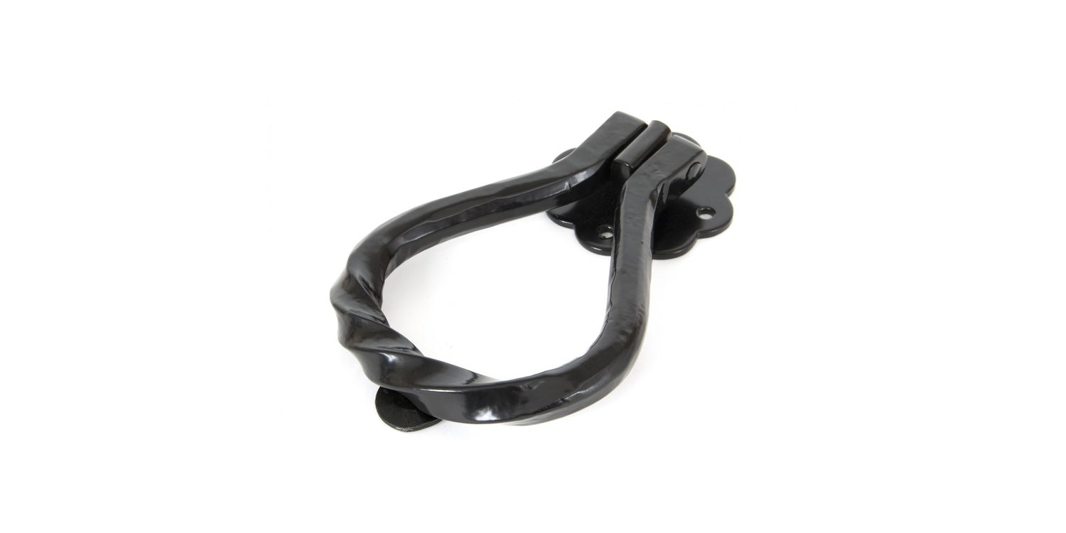 This shaped door knocker by From The Anvil shows a true masterpiece of forging - it's been drawn from one piece of mild steel bar and has been bent to form the twisted pear shape.