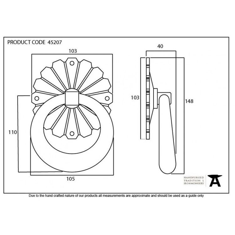 This Shropshire ring door knocker shows a true masterpiece of forging. Drawn from one piece of mild steel bar and bent to form the ring, this highlights every hammer blow by From The Anvil's highly skilled blacksmiths.
