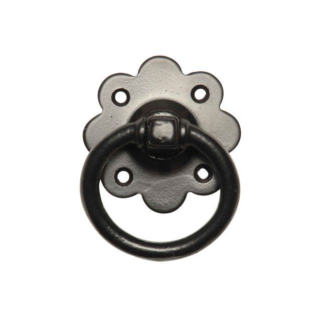 Part of the Kirkpatrick Black Iron range, this strong and durable ring handle, with a delicate flower plate, would be a beautiful addition to any door or gate.
