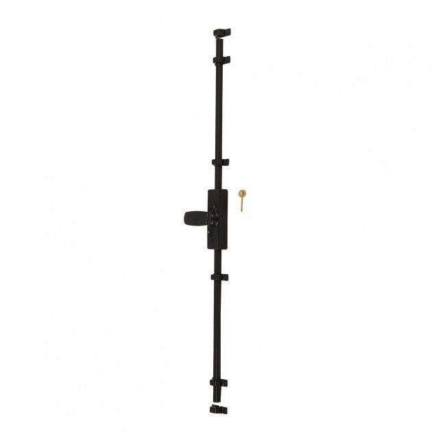 This strong and durable Antique Black 5135 Espagnolette Door Bolt from Kirkpatrick will make a great addition to any elegant French Windows. Part of their classic Black Iron Range, it comes fitted with a knob that operates the bolt on one side and rods that can be cut down to size as required.