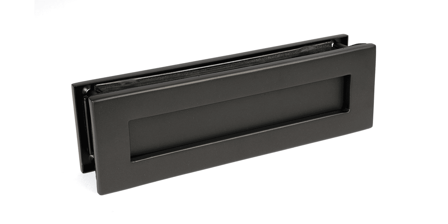The black finish is baked in a high-temperature oven giving it a durable corrosion resistant finish which is salt tested to 480 hours. It is designed to match Anvil's other black front door furniture to create a feature entrance door.
