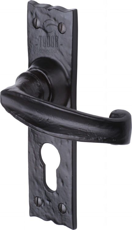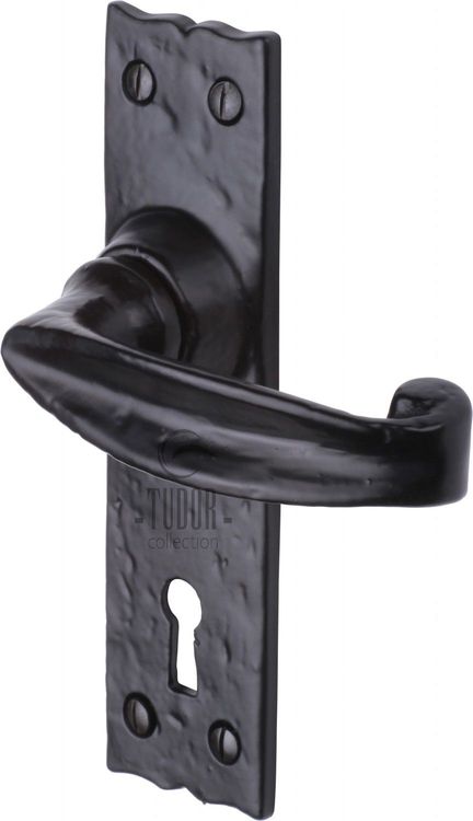 This Wellington lever handle comes from one of the UK's leading architectural hardware companies, M Marcus, based in Birmingham. Part of the Tudor Black Iron Collection, this piece has a black powder coated finish over a traditional Tudor design, making it ideal for restoration projects.