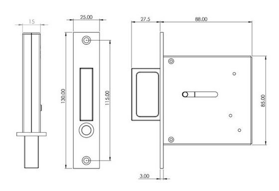 This pop out door end pull from Burlington allows you to access pocket doors when inside the pocket. With a larger grip than the basic finger end pull this is more ideal for those with limited finger strength and on heavier doors. Pressing the button allows the spring-loaded pull to "pop" out to allow operation of the door. The handle then retracts simply by pushing it back into the housing. This is model provides a high-end feel compared to other end pulls