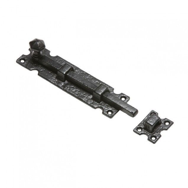 Part of the Kirkpatrick Black Iron Range, this strong and durable necked door bolt, with subtle, ornate detailing, would be a useful addition to any door.