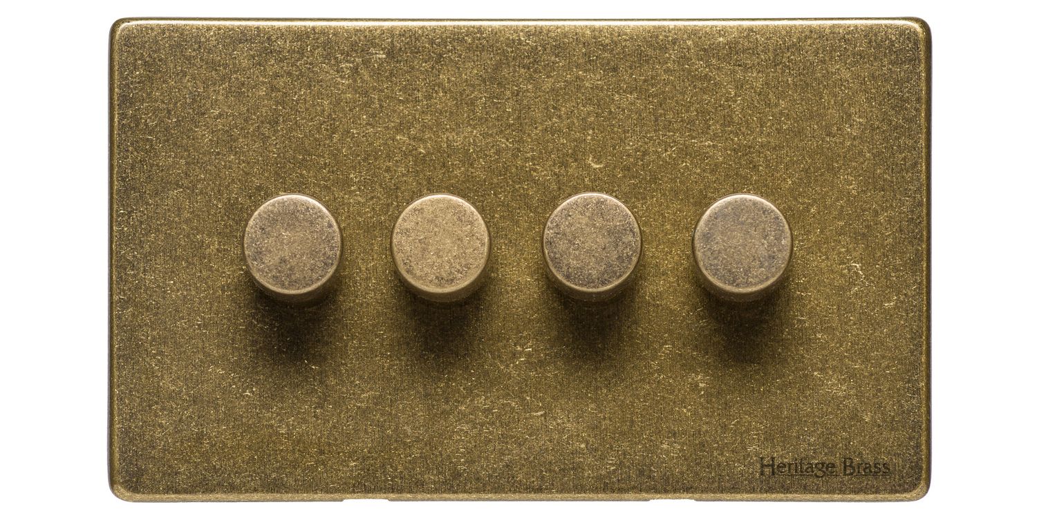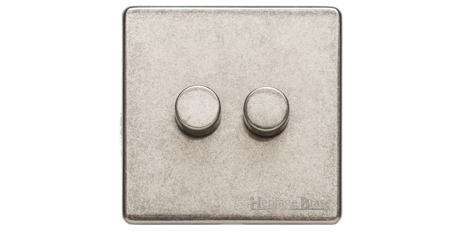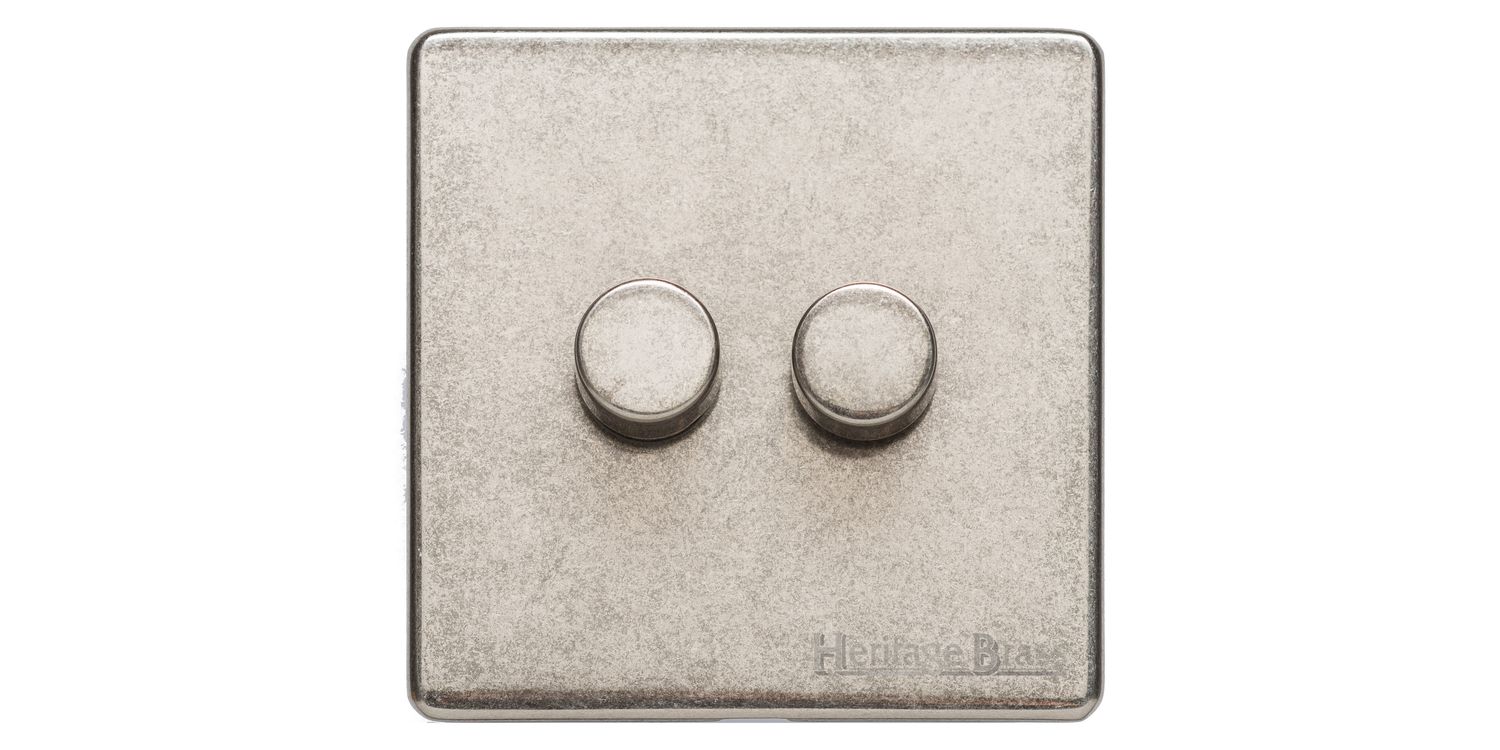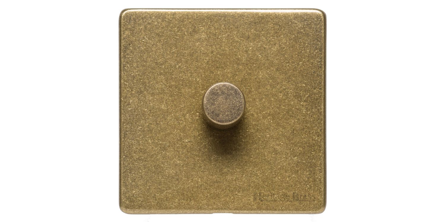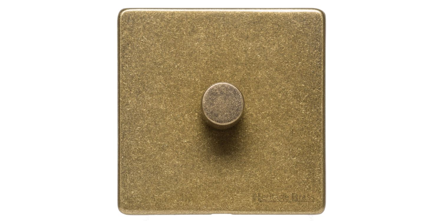 This two way dimmer switch is part of the Vintage Range from M Marcus. Made from solid brass and available in a number of finishes, this classic switch is the perfect final addition to your home or project. Available in 1-4 gang variations, this makes it ideal for both small and large spaces. This dimmer switch is used for incandescent mains voltage lighting.