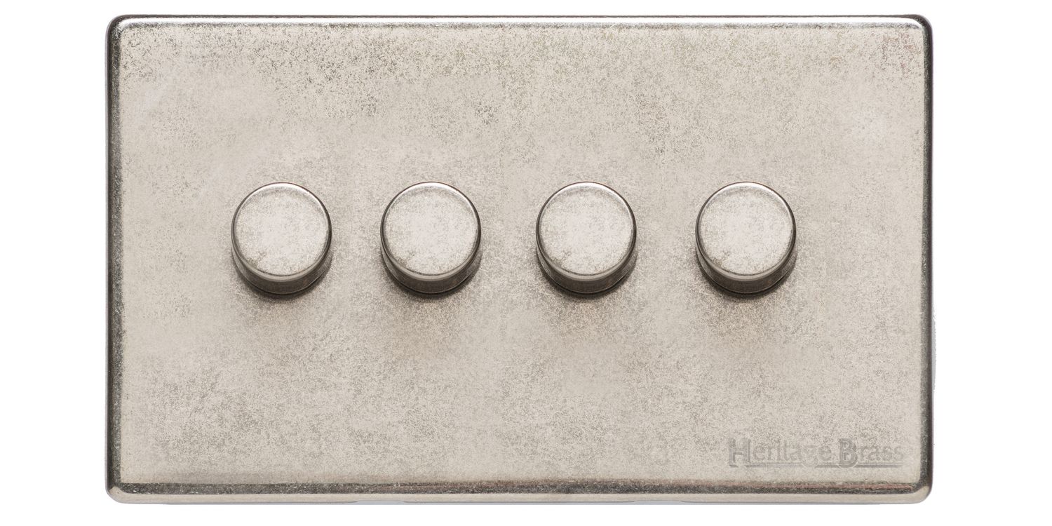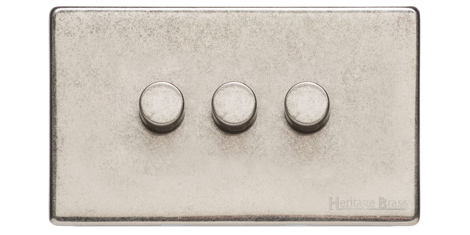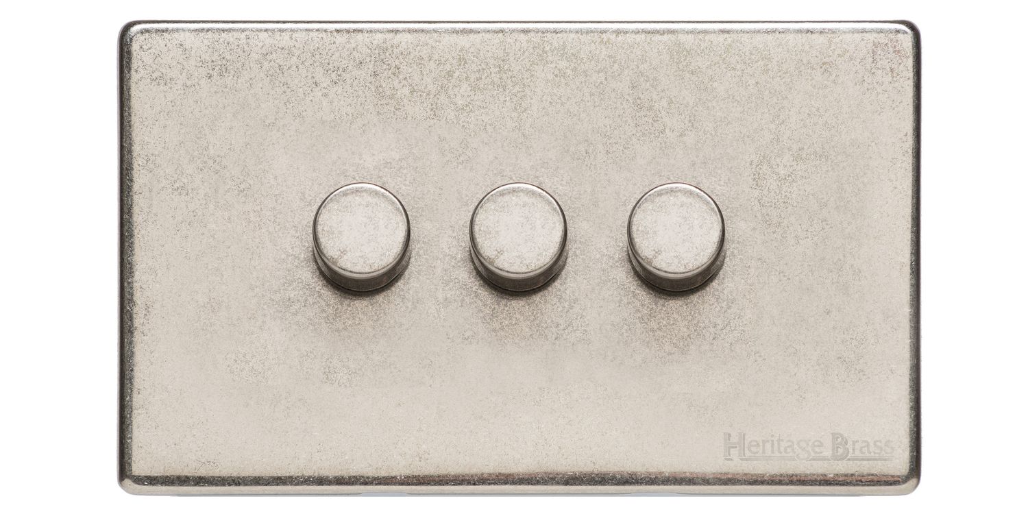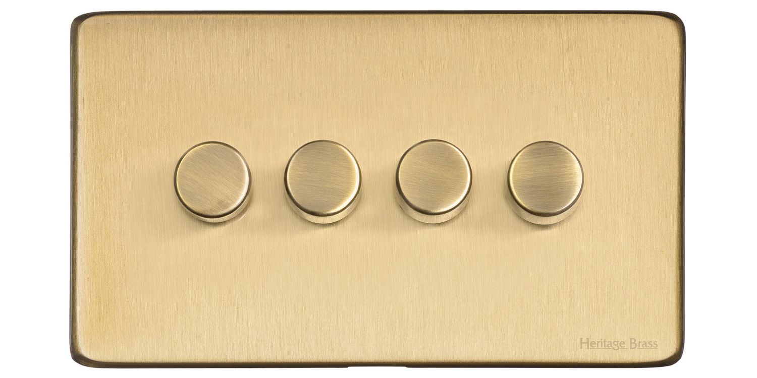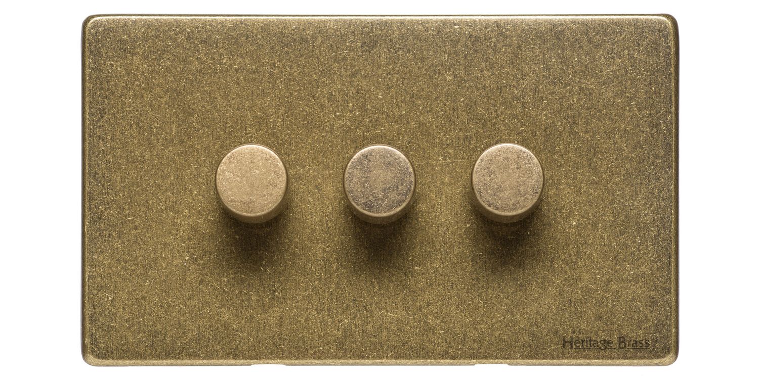 This two way dimmer switch is part of the Vintage Range from M Marcus. Made from solid brass and available in a number of finishes, this classic switch is the perfect final addition to your home or project. Available in 1-4 gang variations, this makes it ideal for both small and large spaces. This dimmer switch is used for incandescent mains voltage lighting.