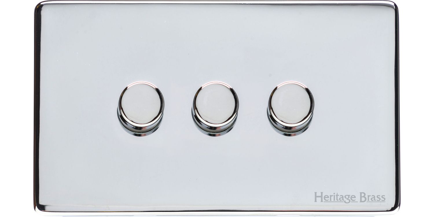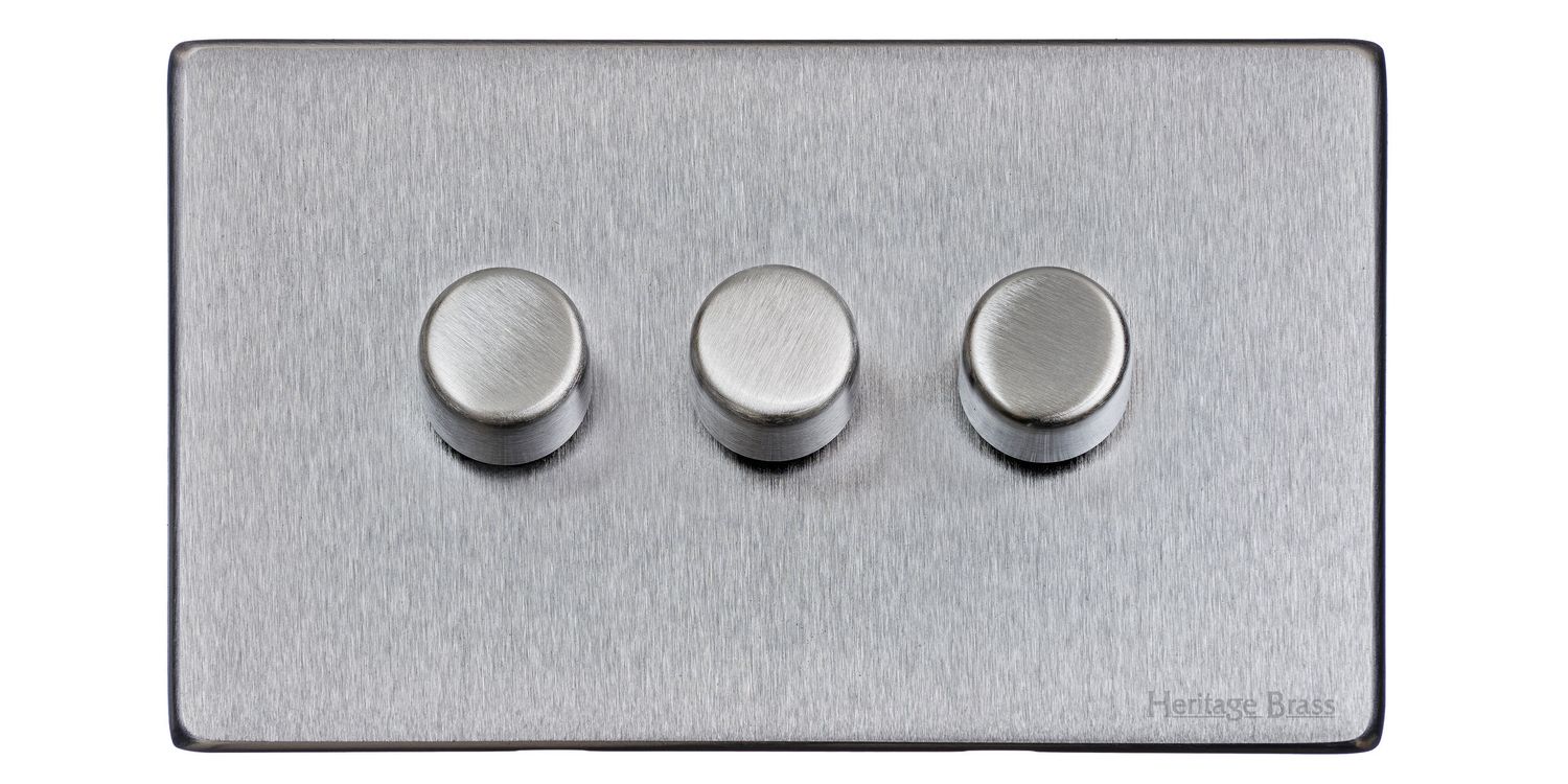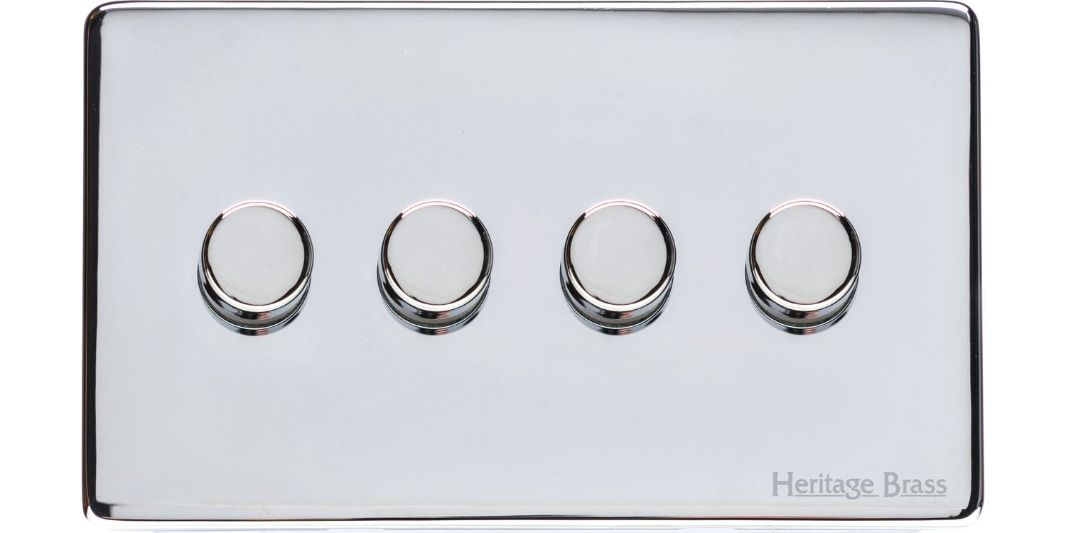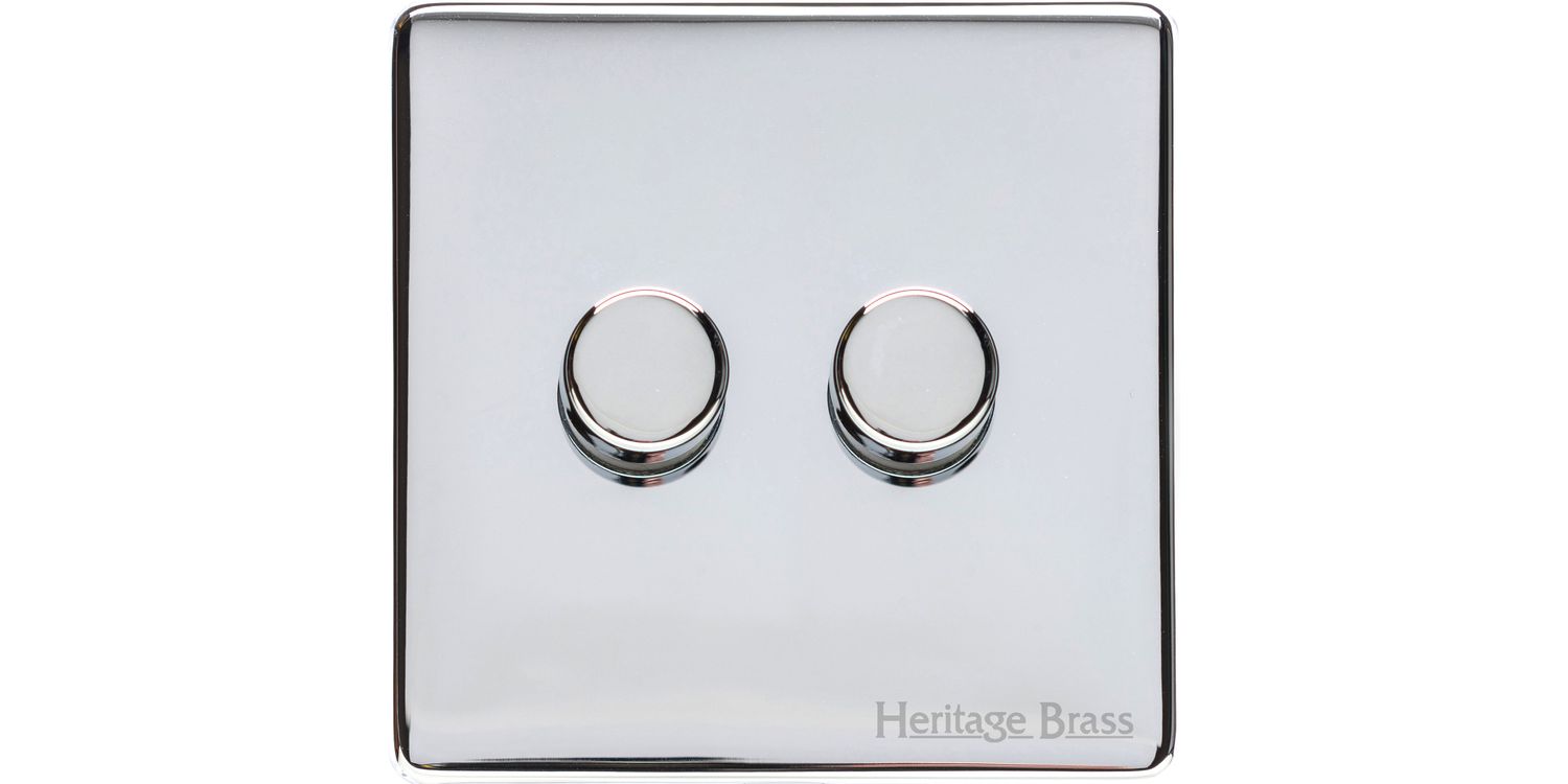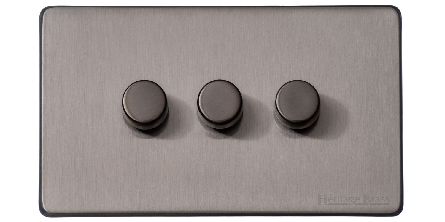 This two way dimmer switch is part of the Vintage Range from M Marcus. Made from solid brass and available in a number of finishes, this classic switch is the perfect final addition to your home or project. Available in 1-4 gang variations, this makes it ideal for both small and large spaces. This dimmer switch is used for incandescent mains voltage lighting.