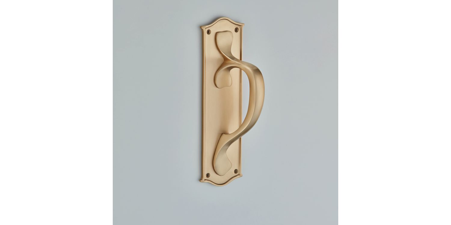 This traditional pull handle on a plate, which is a handed item, has a stylish and elegant design, perfect for any modern or period property. The Croft Foundry has many years experience in delivering exceptionally high quality products, which combine stunning designs with functionality.