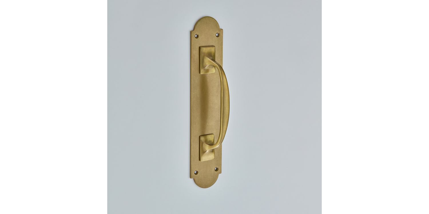 This pull handle on a shaped plate, has a stylish and elegant design, perfect for any modern or period property. The Croft Foundry has many years experience in delivering exceptionally high quality products, which combine stunning designs with functionality.