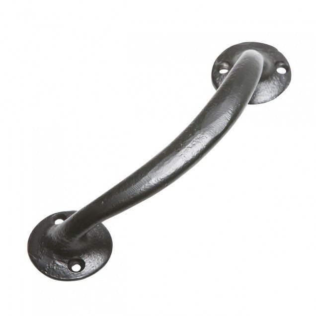 Part of the Kirkpatrick Black Iron Range, this strong and durable pull handle, on smooth, circular plates, will be a nice addition to any framed, ledged and braced door.